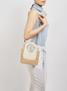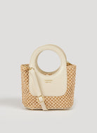Sac Solène en Raphia Naturelle et Cuir Véritable Made in Italy avec Détails en Or Clair