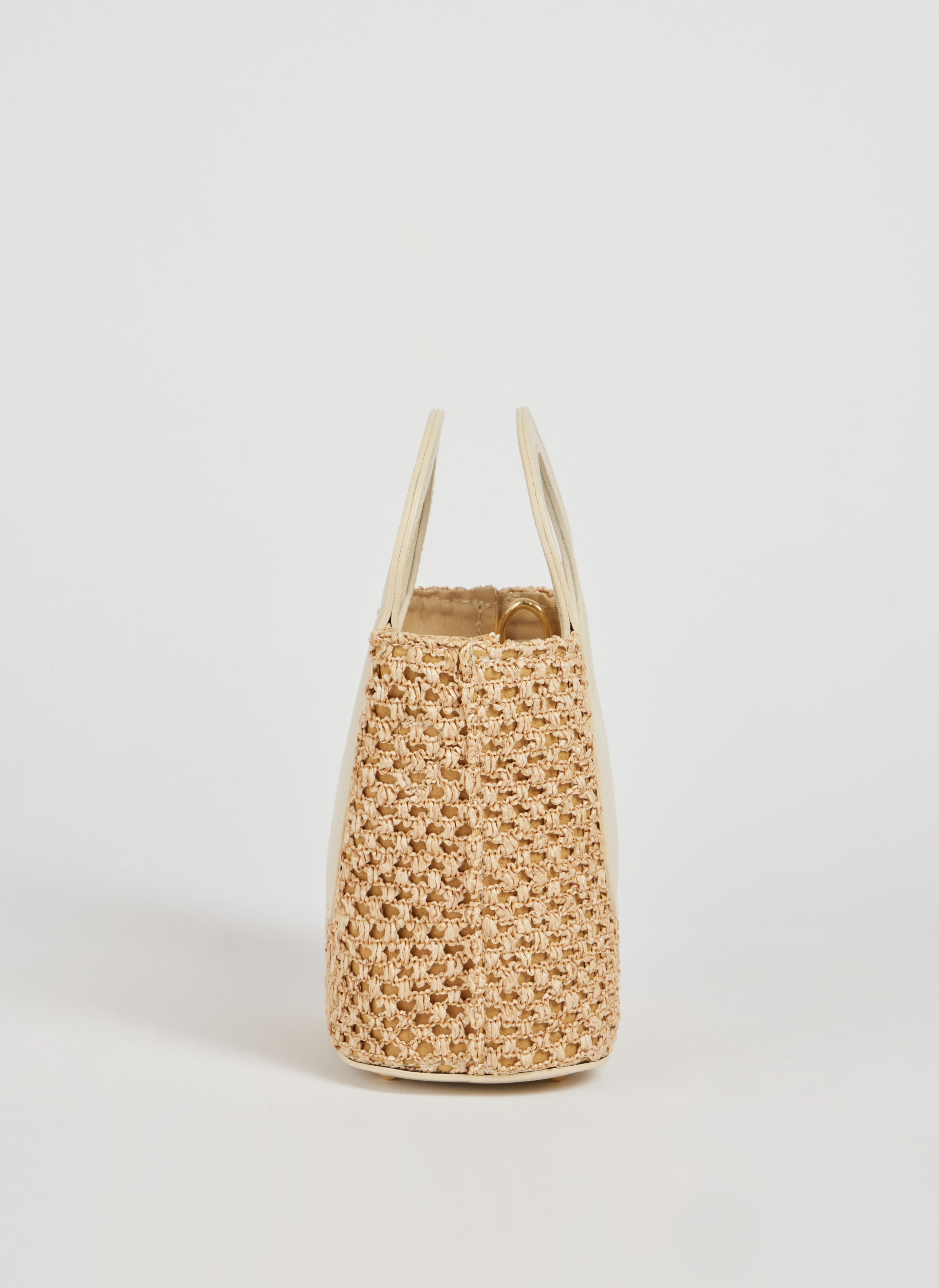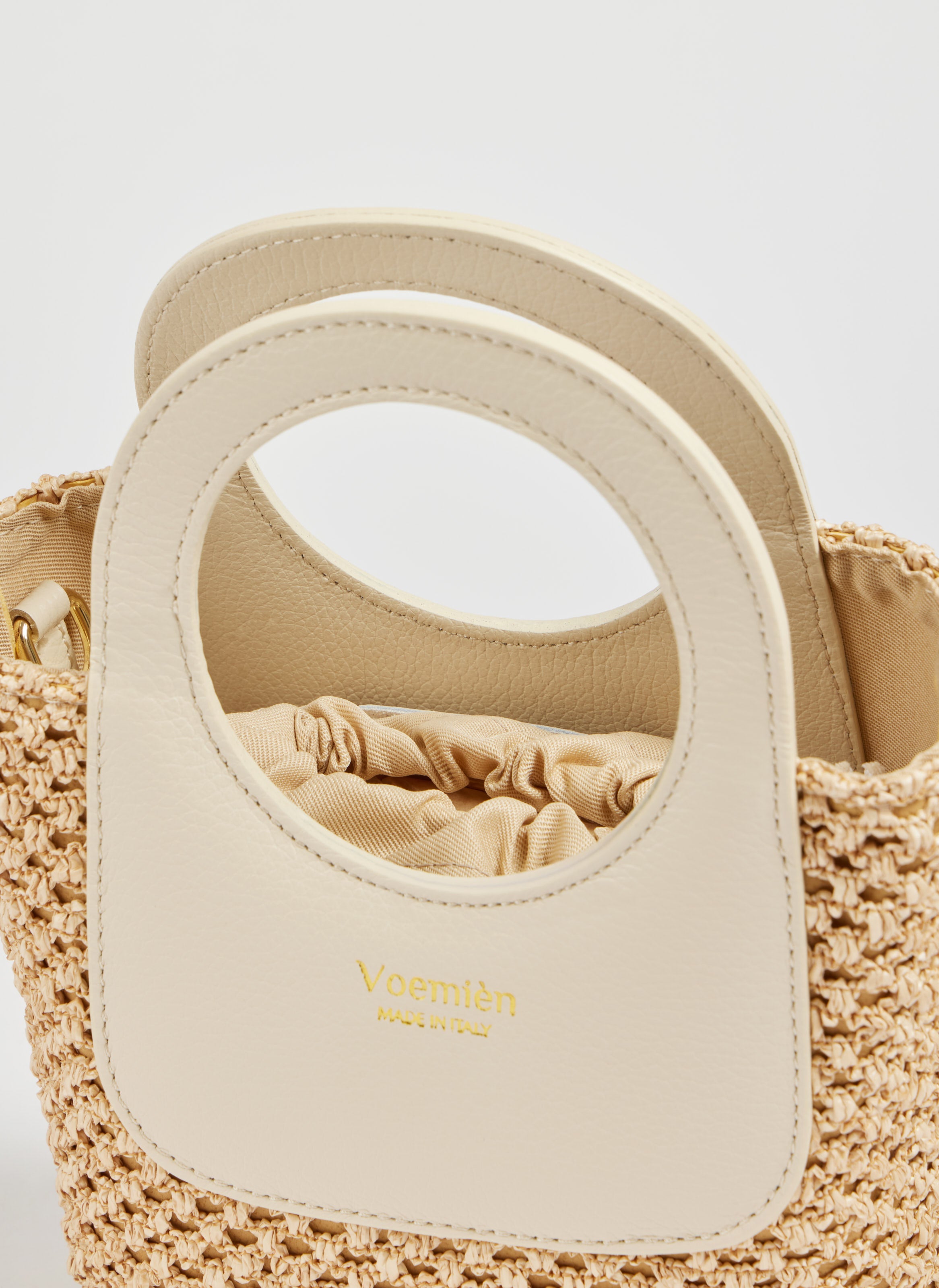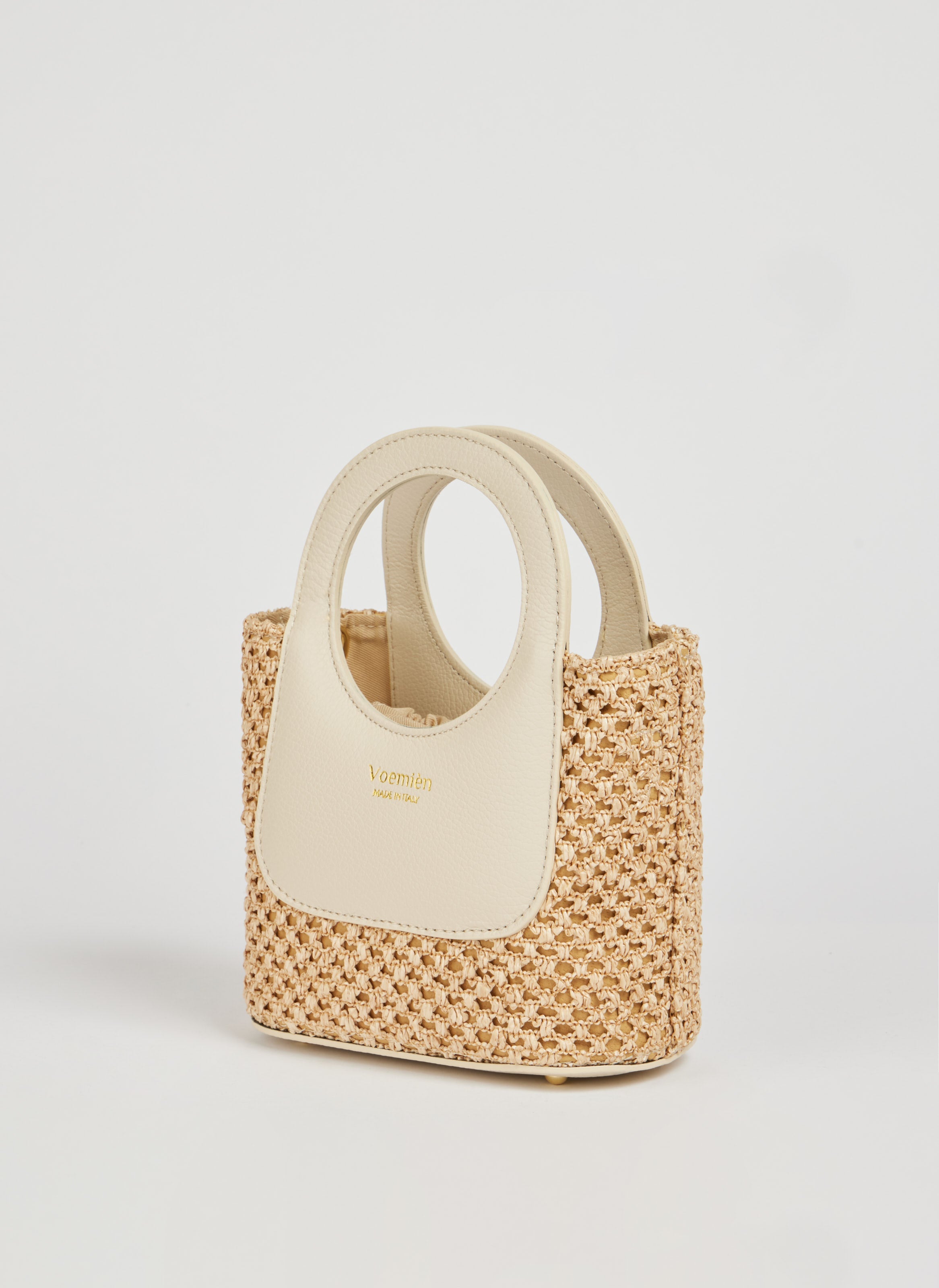 • Matériau extérieur : raphia avec inserts en cuir de veau véritable