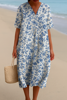 La robe LÉONIE allie la douceur de l’ivoire à la finesse du bleu porcelaine dans un motif floral raffiné. Inspirée des céramiques anciennes, elle dégage une élégance intemporelle. Sa coupe ample, son col en V et son tissu léger en font une robe aussi agréable à porter qu’à regarder — parfaite pour une journée au soleil ou un moment de calme au bord de l’eau.