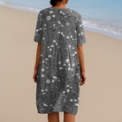 La robe NOÉMIE incarne une élégance sobre et moderne. Son tissu gris foncé, texturé et profond, est parsemé de fleurs blanches délicates qui apportent douceur et contraste. Sa coupe ample et son col en V lui donnent une allure à la fois fluide et féminine — parfaite pour une journée détendue ou une soirée d’été.