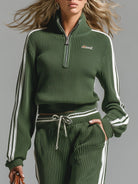 Retro Casual Green Sports Half-zip Knitted Sweater And Pants Set
